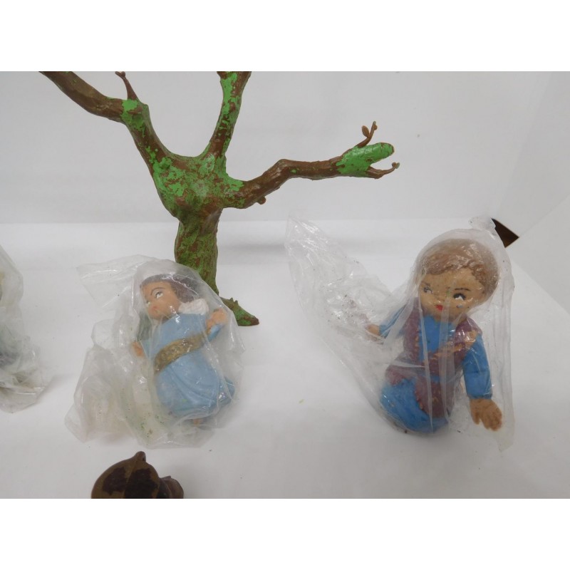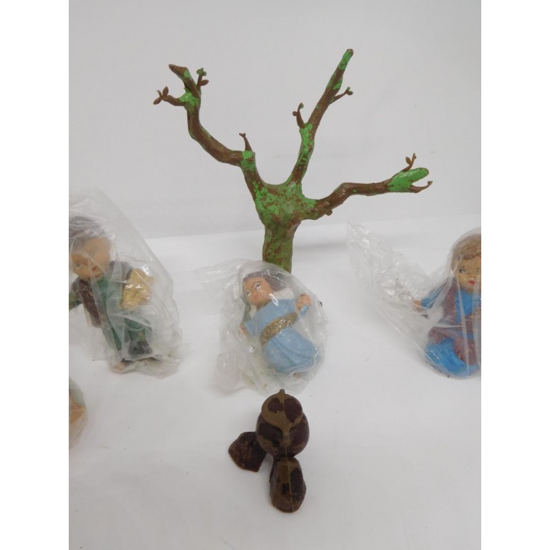 Nuevos, provienen de almacén. Algunos todavía están en sus bolsas. Lote formado por tres pastores, un ángel, un árbol y una olla al fuego. Años 70. Puede tener alguna perdida de pintura ya que es algo típico en estas figuras.