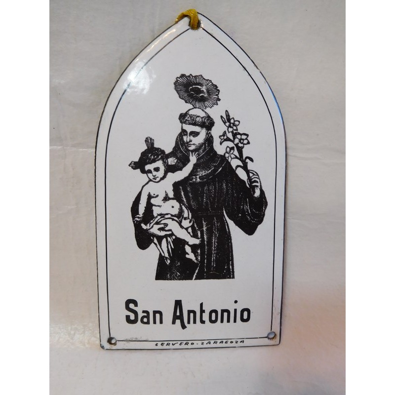 Antigua placa esmaltada de San Antonio Cervero. Zaragoza. Años 40-50