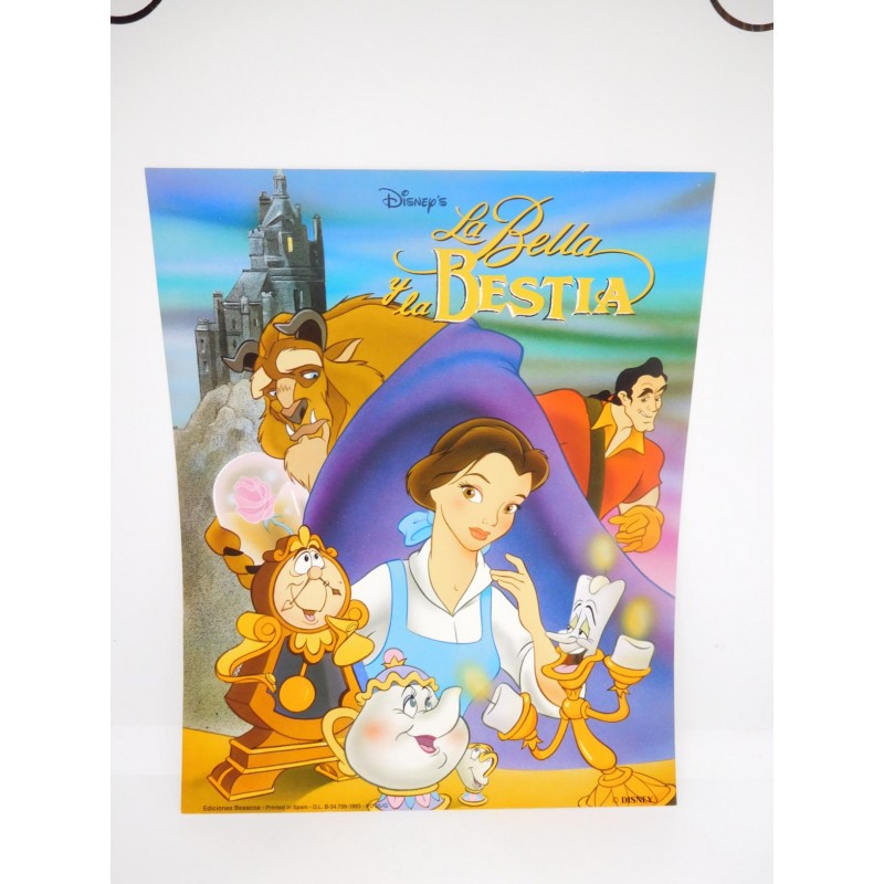Bonita Lámina Poster para enmarcar original años 90. Ed. Beascoa. 1993. Disney. La Bella y la Bestia 3.