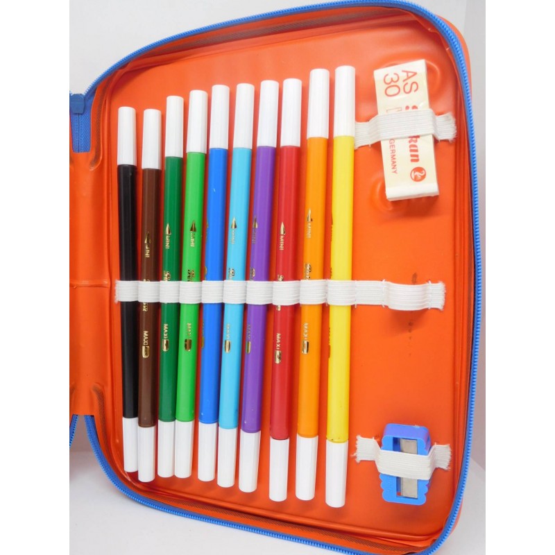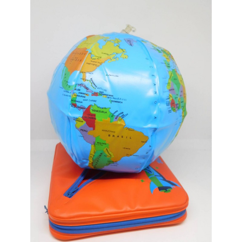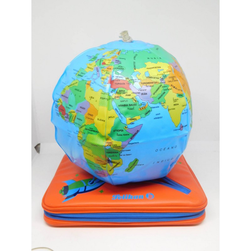 Estuche Pelikan años 80. En plástico. Contiene un globo terráqueo hinchable que se guarda en una cremallera. Todos su contenido es original. Nunca usado. Proviene de almacén.