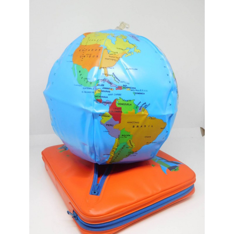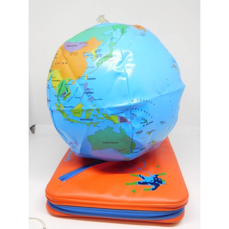 Estuche Pelikan años 80. En plástico. Contiene un globo terráqueo hinchable que se guarda en una cremallera. Todos su...