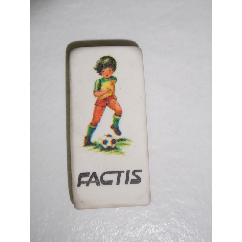 Mítica goma de borrar Factis con niño jugando al fútbol. Años 80