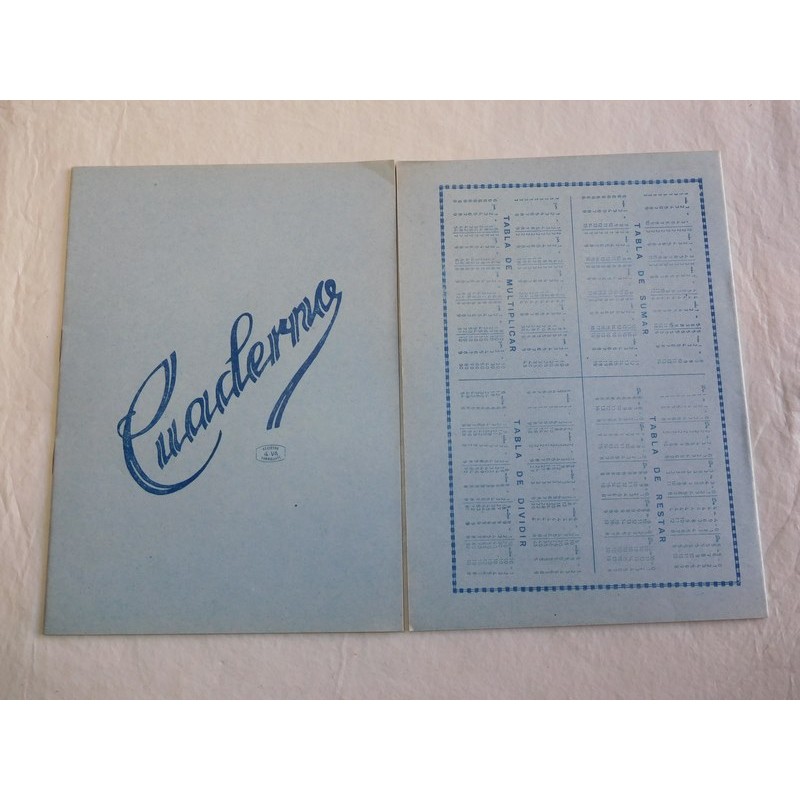 Antiguo cuaderno años 60 de cuadritos. Con tablas de sumar restar multiplicar y dividir.