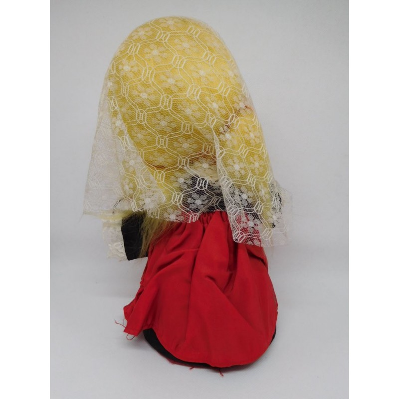 Muñeca en fieltro años 60. Tiene una cremallera en parte inferior para meter caramelos o peladillas.