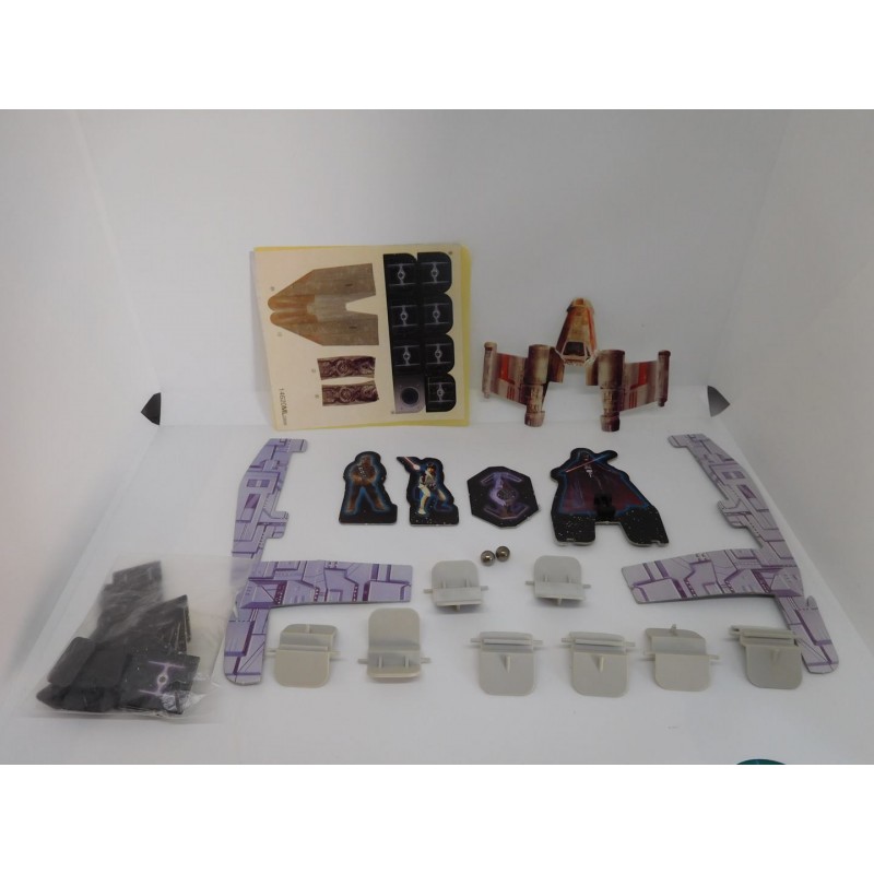 - 3 bolas metálicas. 2 naves de cartón. 1 peón y el cartón de la Xwing esta reparado con cinta adhesiva.