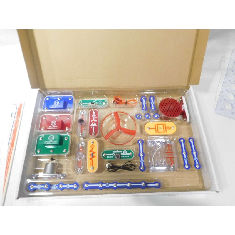 Juego de componentes electrónicos para hacer circuitos sin riesgo. Para niños. Ref 2