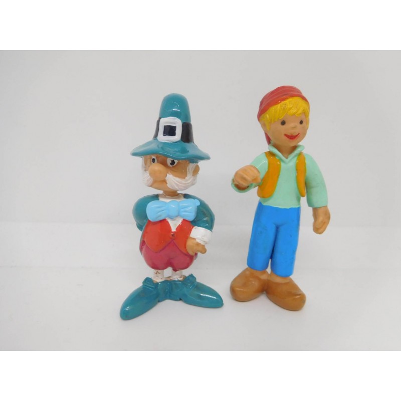 Pareja de muñecos en pvc serie Nils Holgerson. Firma Apollo Films. Años 80.